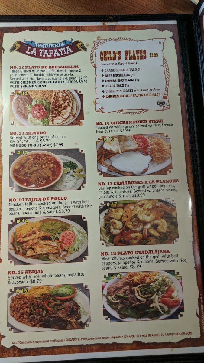 3 grilled flour tortilla filled with cheese and your choice of shredded chicken or asada. Served with rice, beans, guacamole and salad.